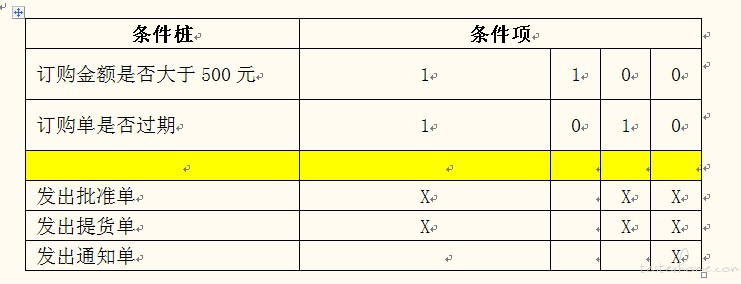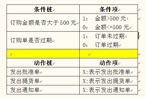在多个条件决定多个动作,并且每个条件的取值只有两种情况下,我们就可以采用判定表方法。